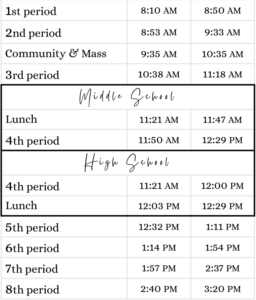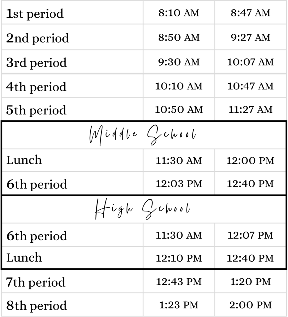 MS / HS Daily Bell Schedules